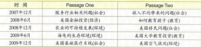 首先通过下面的表格来了解一下近五次六级考试仔细阅读部分文章的主题: