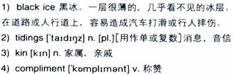Through the black night, the 1)black ice and some snow