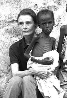 News Report: This was an actress taking on a new role. Audrey Hepburn, the Ambassador, and seeing for herself some of the worst affected areas of 4)Ethiopia. One of the greatest Hollywood film stars was traveling, unusually, not to be seen but so she could see others. Audrey Hepburn has a special relationship with UNICEF. As a teenager living in occupied Holland after the War, she received aid from the fund. Now she saw other children being given help.