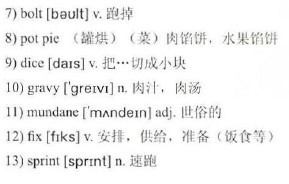 During that time I would go through the cafeteria line and eat alone, feeling unloved and unnoticed. As spring came, one day I was starting out the door and complaining that I had no one to eat with. Mom said to me, “If you want, you can come home for lunch.” That day, when lunch came, it was a beautiful spring day in the hills of central Ohio. The bell rang at noon and I 7)bolted from the school and ran across the little village home to eat. I wondered if my mom would remember. When I got there, Mom was getting a little chicken 8)pot pie out of the oven for me. It was a very humble lunch. It was just one of those four-for-a-dollar pot pies with little 9)diced pieces of chicken, frozen peas and carrots, in some chicken 10)gravy.