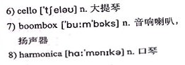 with 6)cello, 7)boombox, 8)harmonica, voice.