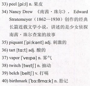 Oranges were always around in our house when I grew up. They cleansed the 26)palate after every dinner; topped 27)pomelos on New Year’s 28)altars, were the calling cards of visitors who always brought the fruit as a gift to the host. To me they were heavy sacks of obligation during holidays and weekends, when my mother and I 29)wended our way through 30)tenement buildings to visit fellow immigrants from China. The tables were 31)littered with 32)melon seeds and orange 33)peels as I waited impatiently while my mother and her friends chatted; conversations I found hard to relate to, preferring instead to bury my head in a 34)Nancy Drew book while they reminisced about the old village.