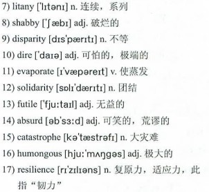 Although the earthquake does remind us of our common and fragile destiny, the fact that the earth trembles and destroys with equal brutality luxurious and 8)shabby houses, small and huge enterprises does not obscure the inequalities that divide Haiti. Social and economic 9)disparities, the unjust distribution of our resources, and the 10)dire poverty of the majority of the population cannot magically 11)evaporate with the dust. But maybe this disaster will constitute a new beginning. Maybe the reconstruction effort that is now so urgent will also work to narrow the gaps between us.