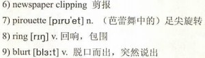I heard her sing when I opened the door but did not want to interrupt the beautiful song by yelling I had arrived, so I just tiptoed to the living room. I looked at how her still-1)lean body bent beautifully, her arms greeting the sunlight that was pouring through the window. And her legs… Those legs that had stiffly walked, aided with a 2)cane, in 3)sensible shoes as long as I could remember. Now she was wearing beautiful dancing shoes and her legs obeyed her perfectly. No 4)limping. No stiffness. Just beautiful, fluid motion. She was the 5)pet of the dancing world. And then she’d had her accident and it was all over. I had read that in an old 6)newspaper clipping.