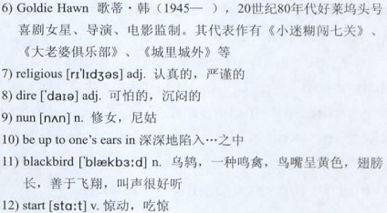 “I had very serious parents,” she said, “very 7)religious. I was taught ever since I was a child that life was 8)dire business and useless laughter took you nowhere. Nowhere good that is. Unfortunately for them, I didn’t believe it,” she laughed. “When I was a teenager I became acquainted with a neighbor of ours. She used to be a 9)nun. I asked why she was nun no more and she said it was too gloomy. I talked with her, and she knew what my parents thought about laughter and being happy. And one day she started talking about laughter. ‘Mary, tell me, how do you feel when you laugh?’ I told her I felt happy. ‘How do you feel when you know you are totally loved.’ I wondered how she could know I 10)was up to my ears in love with someone. But I answered her that I felt happy. ‘Well tell me then, if someone were total love, totally made of love, how would he feel?’ ‘Happy, of course.’ ‘What do happy people do?’ ‘They laugh.’ ‘Why then would laughter be bad?’”