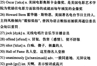 Oprah: “Well, let’s talk about other celebrities. What about 26)Howard Stern, the radio shock 27)jock who has 28)offended many people with his ethnic and religious jokes? Is he a success?”