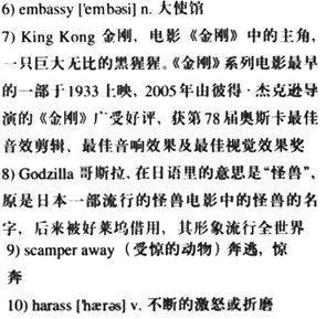 I appreciated Connie’s friendliness, because I’ve encountered a few unfriendly receptionists, including one at the Indian 6)embassy in Washington D.C. who could make both 7)King Kong and 8)Godzilla 9)scamper away in fear.