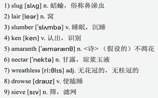 All Nature seems at work. 1)Slugs leave their 2)lair—