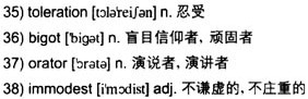 A 36)bigot is a stone-deaf 37)orator.