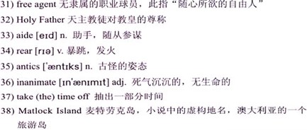 “Dane is dead,” said Meggie. His hand slipped, 16)flopped like a 17)rag doll’s into his lap as he sank into a chair. “Dead?” he asked slowly. “Dane dead?” “Yes. He was drowned six days ago in 18)Crete, rescuing some women from the sea.”