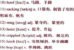 He asked Smoky for the 9)hobble. Smoothing his hand down Pilgrim’s left foreleg, he lifted the 10)hoof. The horse only shifted slightly. Tom soothed him all the time with his hand and his voice. Then, when the horse was still, he slipped the sling of 11)sacking over the hoof and made sure it was 12)snug. The other end was rope and with it he 13)hoisted the weight of the raised hoof and made it fast to the horn of the saddle. Pilgrim was now a three-legged animal. An explosion waiting to happen.
