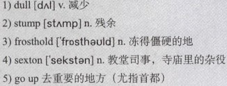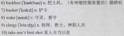 And a good 3)frosthold on the ground so that, for nights before it is dug, the 4)sexton will have had to 5)go up and put a fire down, under the hood that fits the space, to soften the topsoil for the 6)backhoe’s toothy 7)bucket.