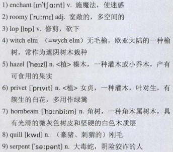 Last summer, whenever I had finished my day’s work, I used to go wandering in certain 2)roomy woods, and there I would often meet an old countryman, and talk to him about his work and about the woods. He had spent all his life 3)lopping away the 4)witch elm and the 5)hazel and the 6)privet and the 7)hornbeam from the paths, and had thought much about the natural and supernatural creatures of the wood. He has heard the hedgehog—he calls him—“grunting like a Christian,” and is certain that he steals apples by rolling about under an apple tree until there is an apple sticking to every 8)quill. He is certain too that the cats, of whom there are many in the woods, have a language of their own—some kind of old Irish. He says, “Cats were 9)serpents, and they were made into cats at the time of some great change in the world. That is why they are hard to kill, and why it is dangerous to 10)meddle with them. If you annoy a cat it might claw or bite you in a way that would put poison in you, and that would be the serpent’s tooth.” Sometimes he thinks they change into wild cats, and then a nail grows on the end of their tails; but these wild cats are not the same as the 11)marten cats, who have been always in the woods. The foxes were once tame, as the cats are now, but they ran away and became wild. He talks of all wild creatures with what seems an affectionate interest, though at times his eyes will twinkle with pleasure as he remembers how he made hedgehogs unroll themselves when he was a boy, by putting 12)a wisp of burning straw under them.