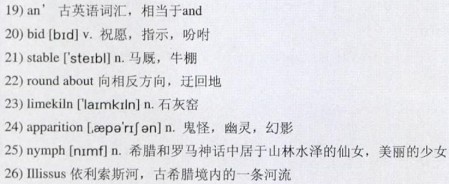 I often entangle myself in argument more complicated than even those paths of Inchy as to what is the true nature of 24)apparitions, but at other times I say as Socrates said when they told him a learned opinion about a 25)nymph of the 26)Illissus, “The common opinion is enough for me.” I believe when I am in the mood that all nature is full of people whom we cannot see, and that some of these are ugly or 27)grotesque, and some 28)wicked or foolish, but very many beautiful beyond any one we have ever seen, and that these are not far away when we are walking in pleasant and quiet places. Even when I was a boy I could never walk in a wood without feeling that at any moment I might find before me somebody or something I had long looked for without knowing what I looked for. And now I will at times explore every little 29)nook of some poor 30)coppice with almost anxious footsteps, so deep a hold has this imagination upon me. You too meet with a like imagination, doubtless, somewhere, wherever your ruling stars will have it, 31)Saturn driving you to the woods, or the Moon, it may be, to the edges of the sea. I will not of a certainty believe that there is nothing in the sunset, where our forefathers imagined the dead following their shepherd the sun, or nothing but some vague presence as little moving as nothing. If beauty is not a gateway out of the net we were taken in at our birth, it will not long be beauty, and we will find it better to sit at home by the fire and fatten a lazy body or to run 32)hither and thither in some foolish sport than to look at the finest show that light and shadow ever made among green leaves. I say to myself, when I am well out of that 33)thicket of argument, that they are surely there, the divine people, for only we who have neither simplicity nor wisdom have denied them, and the simple of all times and the wise men of ancient times have seen them and even spoken to them. They live out their passionate lives not far off, as I think, and we shall be among them when we die if we but keep our natures simple and passionate. May it not even be that death shall unite us to all 34)romance, and that some day we shall fight dragons among blue hills.