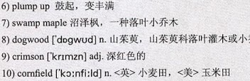 Yesterday was the most wonderful day that could ever happen. If I live to be ninety-nine I shall never forget the tiniest detail. The girl that left Lock Willow at dawn was a very different person from the one who came back at night. Mrs. Semple called me at half past four. I started wide awake in the darkness and the first thought that popped into my head was, “I am going to see Daddy-Long-Legs!” I ate breakfast in the kitchen by candle-light, and then drove the five miles to the station through the most glorious October colouring. The sun came up on the way, and the 7)swamp maples and 8)dogwood glowed 9)crimson and orange and the stone walls and 10)cornfields sparkled with 11)hoar frost; the air was 12)keen and clear and full of promise. I knew something was going to happen. All the way in the train the rails kept singing, “You’re going to see Daddy-Long-Legs.” It made me feel secure. I had such faith in Daddy’s ability to set things right. And I knew that somewhere another man—dearer than Daddy—was wanting to see me, and somehow I had a feeling that before the journey ended I should meet him, too. And you see!