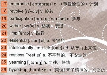 And I don’t know that I have much choice though. I have searched 14)frantically for 15)contentment for so many years in so many ways and all these 16)acquisitions; they run you down in the end. Life, if you keep chasing it so hard, will drive you to death. You have to let go and sit still and allow contentment to approach you. Letting go, of course, is a scary 17)enterprise for those of us who believe that the world 18)revolves only because it has a handle on the top of it, which we ourselves personally turn, and that if we were to drop this handle for even one moment, well, that would be the end of the universe.