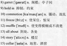 虽然这阵喊声因为离得远而听得不是很清楚,可还是让我感到恐惧万分,这是我听到过的最可怕的声音。这喊声处处都能听到:穿过那些过道,穿过所有的房间,传遍楼上楼下、地下室和地窖;然后又传到外面,越传越远——然后又传回来,在整幢房子里再回响一遍,我还以为它永远也不会停止。可是最终,它还是停下来了,原本阁楼隐现昏黄的微光,现在已完全漆黑一片,这样又过了好几个小时。