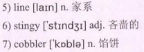 As a young woman, my mother had worked in the kitchen of a large 4)Victorian farmhouse owned by Fannie Cratty and her twin brother, Farnsworth. They represented the end of the Cratty 5)line. Neither had married nor had any living heirs and my father once told me (in a whisper) that it was because they were both too 6)stingy to share their family wealth or pass it on. During those years, my mother helped Aunt Fanny make the best blueberry 7)cobbler jam ever tasted by anyone in Glenfield. She was noted for her jam and for never sharing the recipe with another living soul. (This was the real source of 8)contention among the9)Baptist women.) Even though my mother knew the recipe by heart, as long as Aunt Fannie was alive (and she lived to be ninety-six!), she never made the jam without Ms. Cratty in our kitchen to direct the process and preserve the secret.