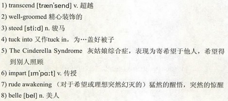 I cannot deny the number of times I’ve dreamt about the fairy-tale visions of life and the happily ever after—the glass slippers, the handsome guy, and the way we’d ride off on his 2)well-groomed3)steed—when lying in bed. Yet, at the same time, I can’t help but wonder about how we are educating our children. When we 4)tuck our daughter into bed at night, are we equating her to Cinderella by telling her fairy tales about the handsome, charming prince who will ride in on a big white horse and sweep her away to a distant castle, where he will wed her and worship her until eternity as they become the King and Queen of the faraway land? Sure, those stories reflect parents’ dreams for their babies, but have we given any thought to the unintentional damage those fairy tales may be doing to our daughters by creating potentially unrealistic expectations?