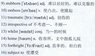 Under this act I was 8)institutionalized for eighteen years. The memories of my childhood are empty, with 9)stubborn scars10)embossed on my heart that cannot be erased. Institutionalisation experiences can be11)traumatic for most children, 12)irrespective of what colour they are. However, for fair-skinned aboriginal people, their identity, culture, and family unity are stripped from them as they are prevented from associating with darker-skinned people.