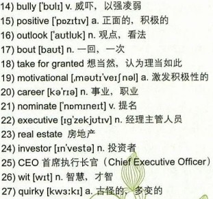 Since his first speaking engagement, Nick has traveled the world telling his story and motivating millions of people – from corporate 22)executives to elementary school children. Now, Nick is also a successful stockmarket and 23)real estate 24)investor, and he is the 25)CEO of his own company.