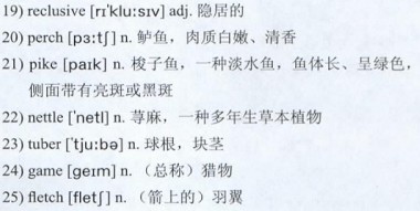 Living deep in a Swedish forest, he had to take an hour and a half walk from the nearest train station—a trip that could take four hours during the winter, when the snow was deep. He had a cell phone, which he charged with a small solar generator and used to call his family and his girlfriend. His diet was not for the fainthearted. Along with 20)perch and 21)pike from nearby lakes, he ate wild plants like 22)nettles, berries and 23)tubers, as well as mice and rats. He couldn’t hunt larger 24)game because he didn’t have a gun—to purchase one, he would have had to provide an address—but he began studying how to make a bow and 25)fletch arrows. Every aspect of his daily routine was essential to his survival.