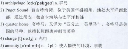 For the last 16 years, Nick Fahey has been living on an island in the San Juan 1)archipelago north of 2)Puget Sound, in Washington State, where his only full-time companion is a 26-year-old3)quarter horse. Mr. Fahey, 67, lives in a cabin on 100 wooded acres; it has no refrigerator, but there is electricity generated by solar panels, so he has light and can 4)charge his cell phone. There are few 5)amenities of the material kind, but his days are his own. With the exception of cutting wood for fuel and to support himself—occasionally he makes a trek to neighboring islands or the mainland, to sell the wood or buy groceries—he is free to do as he pleases.
