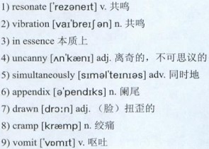 Three months later I was rushed into hospital to have my 6)appendix removed. Next morning I was amazed at how little pain I’d felt. “How are you?” John asked when he visited. “I’m fabulous,” I said and then I peered at him. He looked pale and 7)drawn. “But you don’t look so great. What’s up?” “I had awful stomach 8)cramps last night and kept 9)vomiting,” he replied. “They only lasted an hour and the doctor said there’s nothing wrong. It’s a complete mystery.”