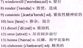 There are preparations for the wedding happening all through the apartment, so when the door opens and the artists 12)strut in, I don’t think anything of it. They’re here, of course, to apply the mehndi, or 13)henna, to the female members of the wedding party. Most specifically, they’re here to work their magic on Nee, to paint the 14)elaborate 15)bridal mehndi that must cover her arms and sometimes even feet. In India, no happy occasion is complete without mehndi. Mehndi has cultural and social significance. It is said that mehndi brings good fortune to a person’s life.