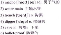 It was 2002 and I’d been working as a labourer for about five years. I was 27 and pretty 1)macho—how could anything bad ever happen to me? On this particular job, I was digging a 2)water main with four other guys. One man would dig out the 3)trench, the rest of us would put in the pipes and the 4)digger behind us would then fill it all in with earth. It was like one long trench, and we were continually moving forwards, laying around 1,000ft of pipe a day.