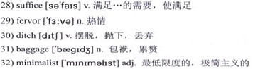 Eventually, the idea of living with just the essentials expanded beyond the days of my twice-yearly vacations. Traveling light became a metaphor for how I wanted to live my life. I began to edit the contents of my surroundings with the same 29)fervor as I had my suitcase. As I slowly 30)ditched the extra “31)baggage,” I could feel the weight lifted from my shoulders.