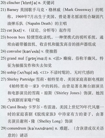 Reality aside, at least Sydney used to think that I was a cool mom. Cool was a 20)clincher when all it took was a song and dance with her and her little buddies to one of 21)Barney’s brain boring songs. I’ve learned the hard way that this tactic no longer 22)cuts it. Today, if I’m caught humming or moving rhythmically in anyway to her ever-blasting 23)boom box when her friends are around, she shoots me a panic-stricken look, as if I were 24)convulsing with a 25)grand mal seizure. Sydney used to play dress up for hours and hours, trying on all of my clothes and shoes. Now however, according to a recent inspection, she insists that everything in my closet must immediately be burned or bu-ried. Those matching mother-daughter outfits at the mall are a thing of the past. Even admitting that we’re mother-daughter at the mall is a thing of the past.