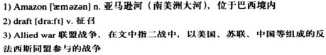 Alcidino dos Santos was on his way to the mar-ket to buy vegetables for his mother one morning in 1942 when an army officer stopped him and told him he was being 2)drafted as a “rubber soldier.” Men were needed in the Amazon, 3,000 miles away, to harvest rubber for the 3)Allied war effort, he was told, and it was his 4)patriotic duty to serve.