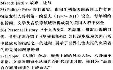 On that day in 1963 when she walked into the 3)boardroom of 4)The Washington Post to take over the company, Katharine Graham hardly knew what was in store for her. She assumed she would hover discreetly in the background while the business, including the newspaper and 5)Newsweek magazine, more or less ran itself. The reality turned out to be far more complicated-and rewarding. “Ididn’t understand the immensity of what lay before me, how frightened I would be by much of it, how tough it was going to be,she wrote in her memoirs. “nor did I realize how much I was eventually going to enjoy it all.”