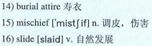 After about a week, we shopped for a new suit, found one, and he looked especially handsome as he modeled it. Driving away from the mall he announced, “This won’t get much wear except to church, and the last time I wear it I won’t ever have to change clothes again.” It took me a minute to grasp what he was saying. “Oh, Dad! If I’d known we were looking for 14)burial attire, I wouldn’t even have taken you shopping.” He simply laughed at me and his blue eyes danced with 15)mischief.