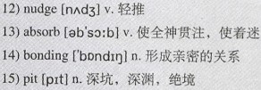 Then the guide yelled again that two were coming close to the boat. There was my newfound friend with her baby. It was unbelievable to see how she 12)nudged her baby toward our boat. She was bringing her baby to meet me! Before long, I was within 5 feet of the most beautiful baby whale you can imagine. The mother swam just on the other side of her and after I had long enough to 13)absorb what I was seeing, she guided her baby away from the boat and out into the waters.