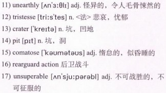 Last night before dinner I missed Ralph for a while. For the thousandth time I wondered, “Is he all right? Could he perhaps be feeling ill?” Usually after the first panic and wild 7)wobblings on my base, my 8)equilibrium has been restored. This time, however, I felt it was odd that he should be in the library at this cold evening hour. I ran upstairs and found him lying down. No, he was not all right. Going through the kitchen to look at the stove, he had suddenly felt a constriction in the chest. He took a pill and then another, but remained limp and drowsy, wanting no food and unable to face the company. I am, in a 9)spurious way, so armoured against these 10)set-backs that a dreadful 11)unearthly calm settled down on me, partly to make me able to face his dread of my “fussing”. But along with this grey 12)tristesse was the awareness of a huge 13)crater opening, black and menacing. Paralysed in mind and hardly able to talk, I went downstairs and cooked dinner and somehow sketched in a part in the conversation until the meal was over, when I was able to go up and lie beside Ralph.