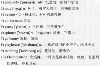 “噢,当第二朵花开始走过草地时,我注意到约翰坐在那儿,身子有些僵硬。你看——他不再喝他的果汁了。他本来很爱喝草莓汁的,所以在我看来,他当时有些不妥。于是我问他是不是也看到了我所看到的东西。知道自己没有疯,他放下心来——他也看到了同样的东西。但你知道,当时的情景让人心生恐惧。看见你所有的黄色三色堇从花圃走下来,消失在小孩子的游戏木屋底下。好一会儿,我们只是坐在那儿,怀疑自己是不是进入了纳尼亚王国或是别的什么地方。”