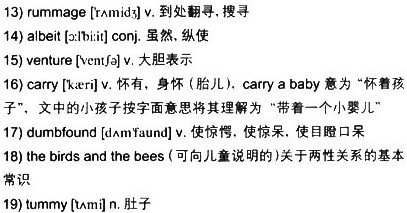 I stood, 17)dumbfounded, wondering if I should be the one to answer this child’s first question about 18)the birds and the bees. Melissa walked over to me, put her arms around my big 19)tummy, and looked up at me.