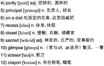 The bell rang. Good, it was 7)recess and soon I’d have a few minutes to put my feet up and rest. But what was Melissa doing” She didn’t leave the room with the others. She was at my “teacher 8)closet,”a very 9)sacred place. All the children knew they could never open the doors to this closet unless specifically requested to do so by me. The only 10)glimpse any of them ever got of the inside was when I asked someone to bring out the 11)scissors or the 12)crayons.