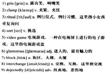 As she was looking, a little boy wandered in across the aisle and started 4)sorting through some of the 5)video games. He was dressed neatly, but in clothes that were obviously rather worn, and wearing a jacket that was probably a couple of sizes too small. He, too, had money in his hand, but it looked to be no more than five dollars or so, at the most. He was with his father as well, but each time he picked one of the video games and looked at his father, his father shook his head.