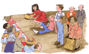 Hayden patted his bag. "Of course it is. I've been taking care of it for a whole month." The other Big Toe contestants were a lot older than Hayden, but he wasn't worried. "I bet they haven't been lifting weights," he whispered, climbing onto the stage. He stood between a man wearing overalls20) and a woman in a red-flowered dress. All the contestants were carrying small bags or boxes.