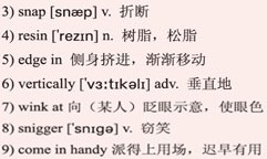 “Perfect,” the old man said, “straight and strong and not so dry that it would 3)snap. Good! Now scoop some 4)resin from the pine tree on the other end of the stick. Be careful not to get your clothes dirty!”
