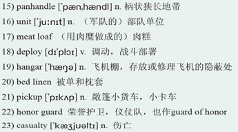 On the day Miles was 18)deployed, after we left him at the 19)hangar on base, Terry came back to our apartment. She helped me pack up our life so I could go home to my family in Florida. Together, we boxed the towels, the 20)bed linens and the TV. We loaded them into Miles’s21)pickup and Terry drove the truck back to Texas, where it would wait for him to come home.