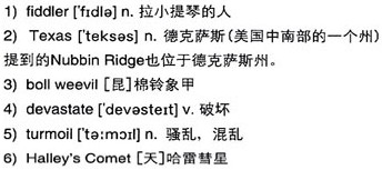Everything on Nubbin Ridge—and on a majority of the small farms in Texas—was built around cotton as the money crop. But in the early years of the century, the 3)boll weevil began 4)devastating the cotton farms in the south.