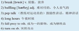 As I watch my opponent, I think about my training with the other soldiers, the 3)pep talks and the heartfelt conversation over endless pots of coffee. The 4)long hours studying our manuals and preparing for battle. I think about the ones that didn't make it, the ones that trained so hard and yet somehow 5)fell prey to the enemy.