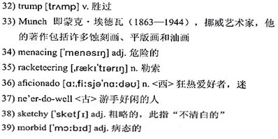 But prison art appears to adhere to the same principles as all commercially driven art: 31)namely, market forces 32)trump all. And there’s clearly a consumer demand for criminal art. Ronnie Kray’s 33)Munch-like landscapes with 34)menacing figures standing outside bleak buildings sold in spite—or perhaps because—of his conviction for murder, 35)racketeering, and torture. What’s more, the auction was a spectacle, attracting serious 36)aficionados as well as 37)ne’er-do-wells from the Krays’ 38)sketchy past. “Some of the crowd you were afraid to speak to; others were collectors,” says Paul Smith of the Hampshire auction house. “It didn’t matter that the work wasn’t any good. There was a 39)morbid fascination all round.” As admirers of artists from Francis Bacon to Edvard Munch can attest, few things are more alluring than the vision of a dark mind hanging on the wall.