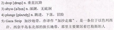 A 30-foot 2)drop was the only way into the dark, earthy 3)abyss, and the Palestinian tunnel workers were giggling nervously at the prospect of a foreign journalist going for a 4)plunge. It didn’t seem like a good idea. Apart from the descent, there had been Israeli air strikes for the past three days targeting the dense smuggling network that snakes beneath the 5)Gaza Strip’s border with Egypt. An Israeli F-16 was circling overhead at that very moment.