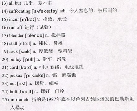 When the Islamist organization 12)Hamas took control of Gaza in 2007, Israel 13)all but shut the tiny coastal territory down, imposing a 14)suffocating blockade on Gaza’s land and sea borders that keeps the people in and the goods out. That’s when Gazans turned to the tunnels. “When the siege was first imposed and the Israelis started to ban entry of fuel, gasoline, etc., the locals here were forced to look for another source,” says Khalid al-Hubi, a Rafah shopkeeper who deals mostly in smuggled generators. But, he adds, “The tunnel trade is expensive and the customers have to pay all the charges 15)incurred from Cairo until it reaches their hands in Gaza.”