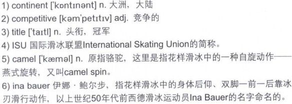 Kim Yu-Na is the 2009 World Figure Skating champion and the 2009 Four 1)Continents champion, and she may be the favorite for the 2010 Winter Olympics. Others to watch include 2006 Olympic silver medalist, Sasha Cohen, who has returned to 2)competitive skating after a three-year absence, 2008 World Figure Skating champion Mao Asada, 2007 World Figure Skating champion Miki Ando, and 2009 World silver medalist, Joannie Rochette.